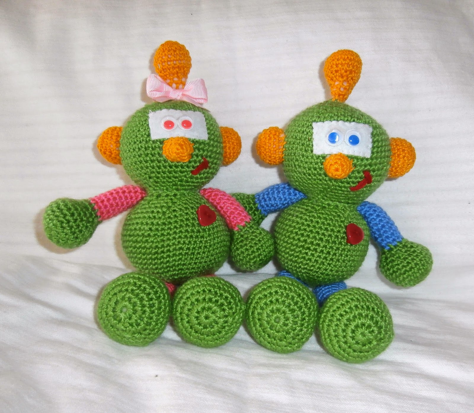he disfrutado mucho tejiendo los robotitos.