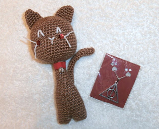 Hola preciosa, a mis hijos tambien les encanta todo lo relacionado con Harry Potter, las dos niñas y los dos varones se han leído todos los libros y han visto todas las películas , dice mi hijo Pablo que las ha visto un total de once veces cada una. El personaje de Hermión es el favorito de Cristina, porque le encanta leer igual que a ella, y este colgante le gusta a Pablo, se llama "Las Reliquias de la Muerte" y significa: el triángulo,"la capa de invisivilidad"el circulo, """la piedra de la Inmortalidad, y la barra vertical, "la barita de Sauco". Ahora ya no se te olvidará su significado, jajajaja!!! , como siempre me encantan tus amigurumis, son preciosos.