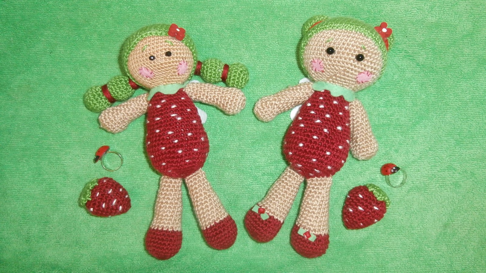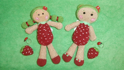 Estan tan lindas tus haditas, las dos adorables. A mi que me encantan las frutillas espero recojan muchas!!! besitos