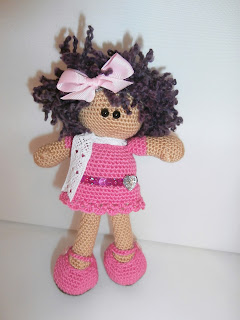 Te ha quedado una muñeca divina, jeje, ese pelito es fantástico para hacer una muñeca de pelo rizado, jiji, a mi siempre me quedan con el pelo lisito :P , no se como lo tejiste pero queda divino.