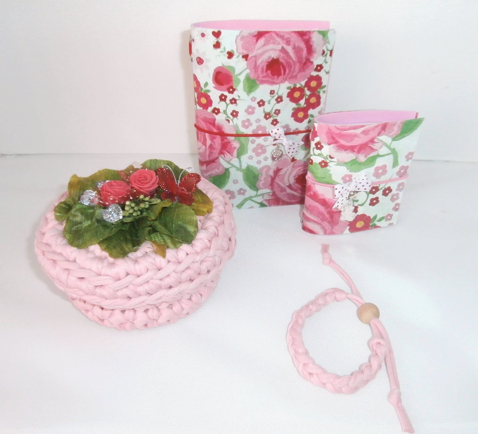 Que trabajos más preciosos y el color le viene al dedo y ésto que me gusta poco el rosa !je!je! un conjunto lindo en verdad, con mucho detallito, cestita bordada decorada, libretitas, y pulsera, has cuidado todo y lo mejor personalizado eso lo dice todo!!!lo artesanal no tiene comparación es bello con amor!!!