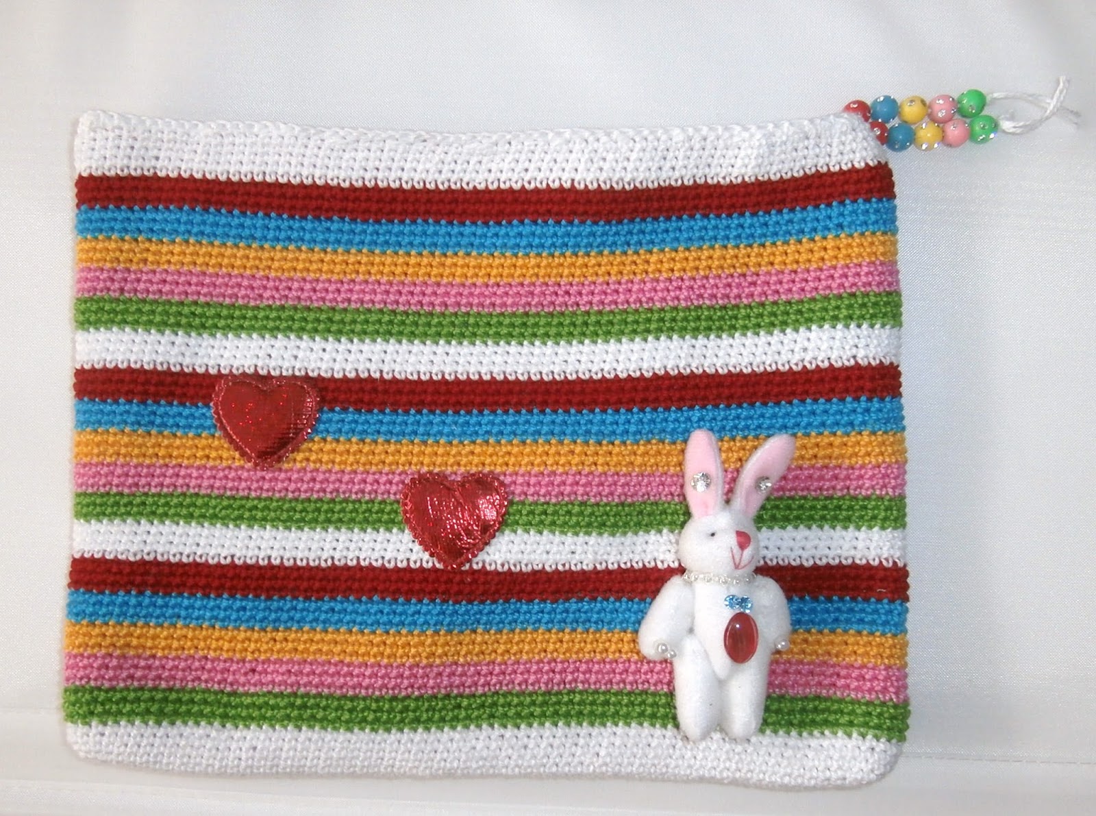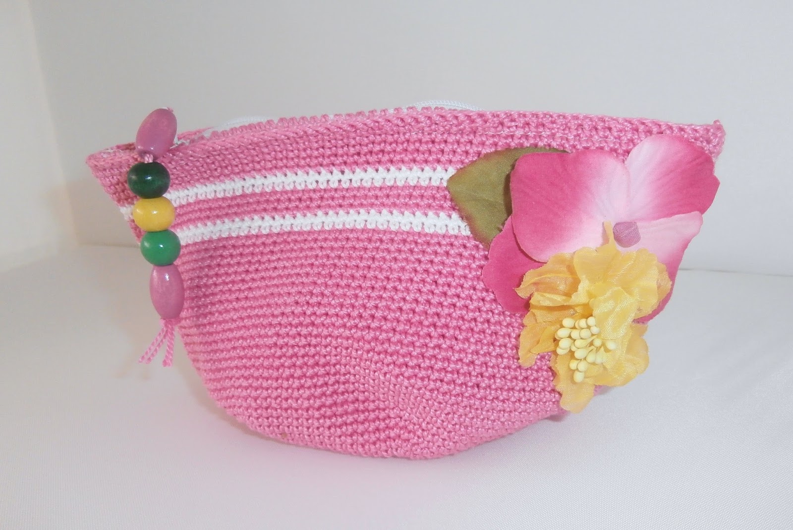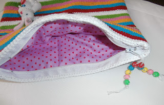 El neceser lo teji en fucsia combinandolo con blanco